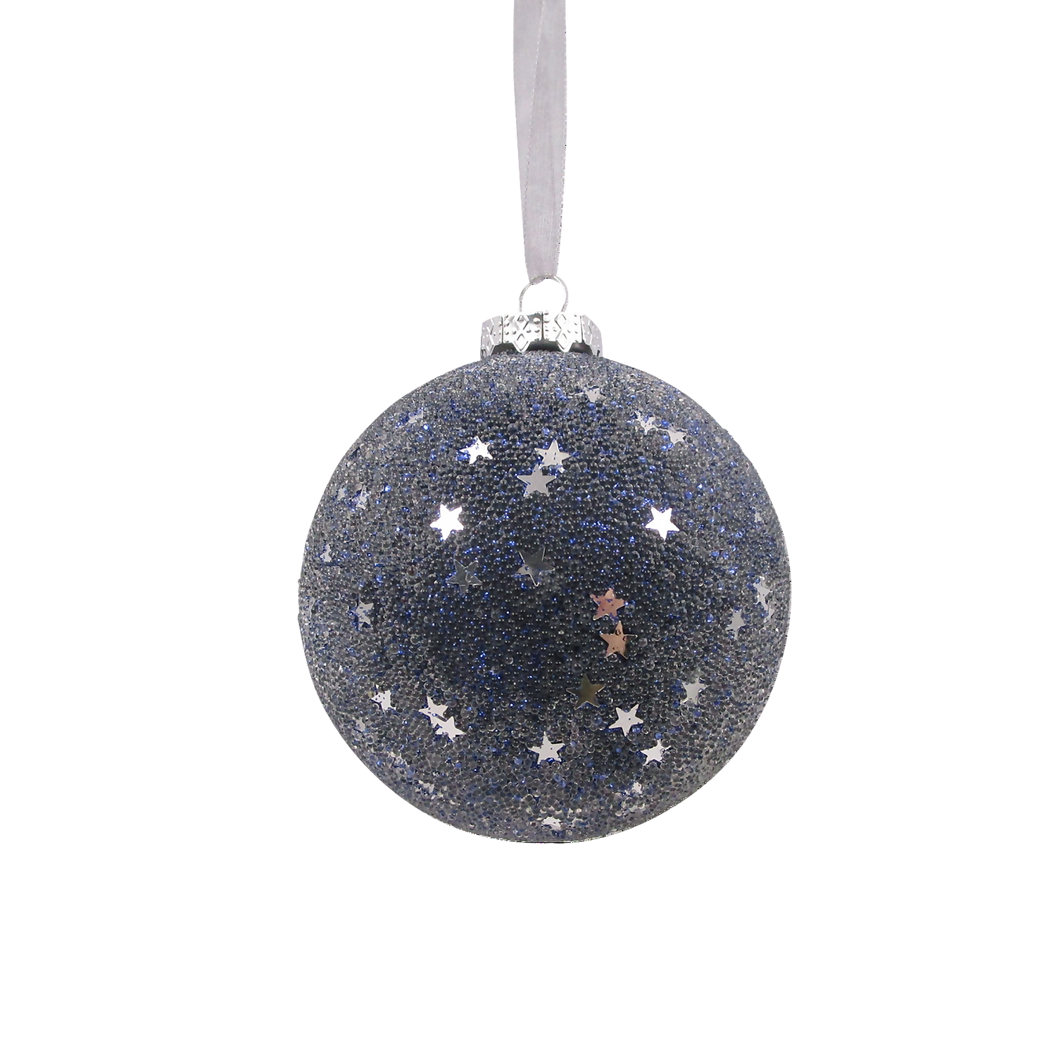 Add some sparkle to your Christmas decorations with this beaded bauble. Delicate pewter coloured beads are embedded with silver stars for glittering effect.